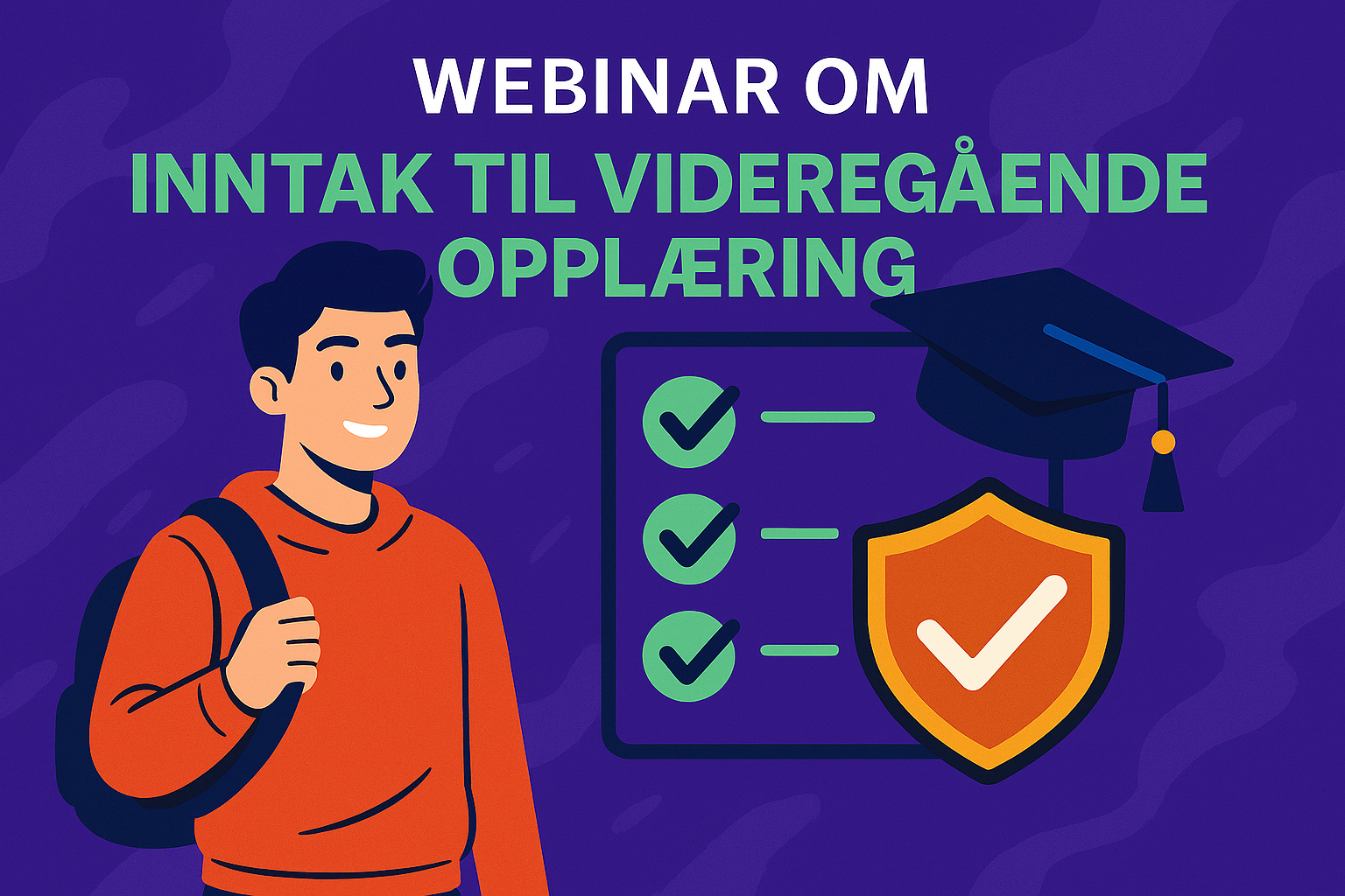 Avd. for utdanning og kompetanse arrangerer i år to webinarer hvor det vil bli gitt informasjon om regelverket som skal gjelde for inntaket til vgs. til skoleåret 2026/2027. Det første webinaret (24. november) vil ha fokus på hovedreglene som vil gjelde for de fleste søkere. Webinar nr. 2 (27. november) vil ha fokus på unntaksbestemmelser og fortrinnsinntakene.