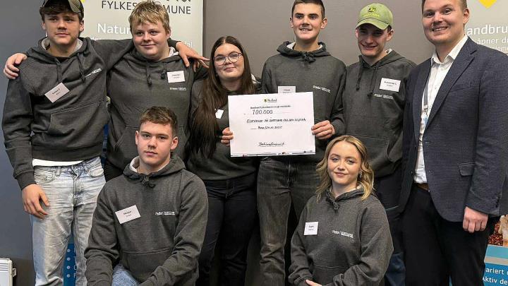 – Dere er de beste ambassadørene og framsnakkerne vi kan tenke oss for landbruksutdanningen i Nordland. Bruk disse midlene til å få enda flere unge til å velge grønne fag på videregående skole, sa fylkesråd for utdanning og kompetanse Joakim Sennesvik (H) da han overrakte sjekken på 100 000 kroner til en glad og overasket elevgjeng.