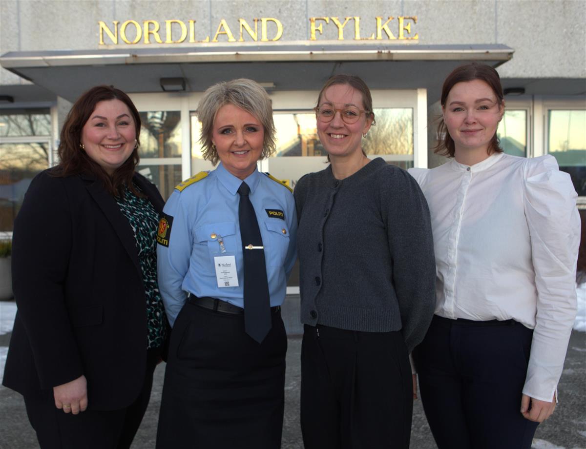 Felles ansvar, et lavterskeltilbud for å forebygge utenforskap, kriminaliltet og rus, ble presentert for statssekretær Siri Storstein Hytten . Fra venstre: Ordfører Marlen Rendall Berg, politimester Heidi Kløkstad, statssekretær Siri Storstein Hytten og fylkesråd Aina Nilsen.