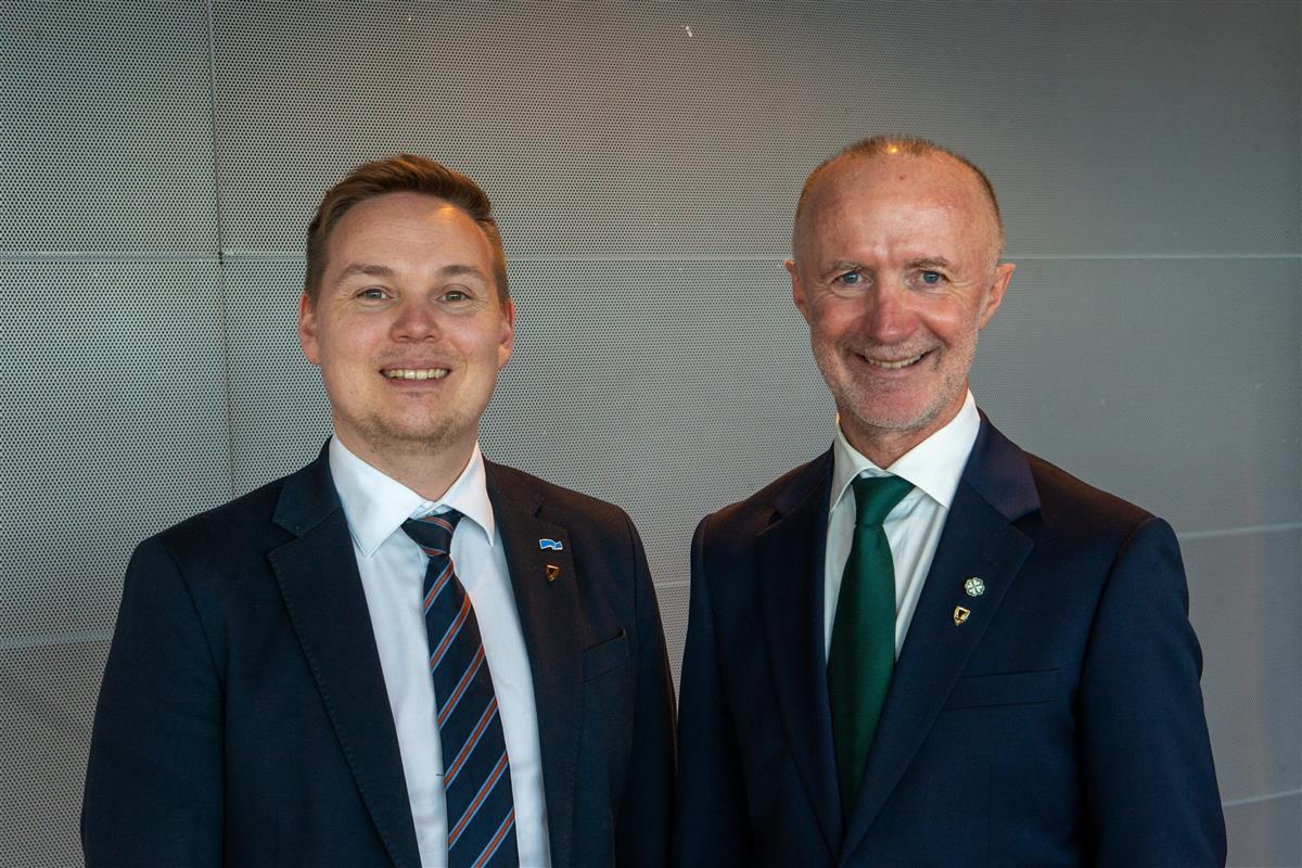 Fylkesråd for utdanning Joakim Sennesvik (H) (t.v) og fylkesråd for næring Svein Øien Eggesvik (Sp)
