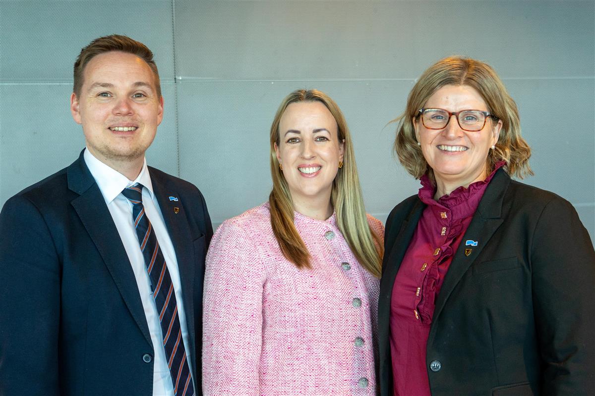 Fylkesrådene Joakim Sennesvik, Lise Henriette Rånes og fylkesrådsleder Marianne Dobak Kvensjø sier nye Narvik videregående skole kommer i gang for alvor i 2027.