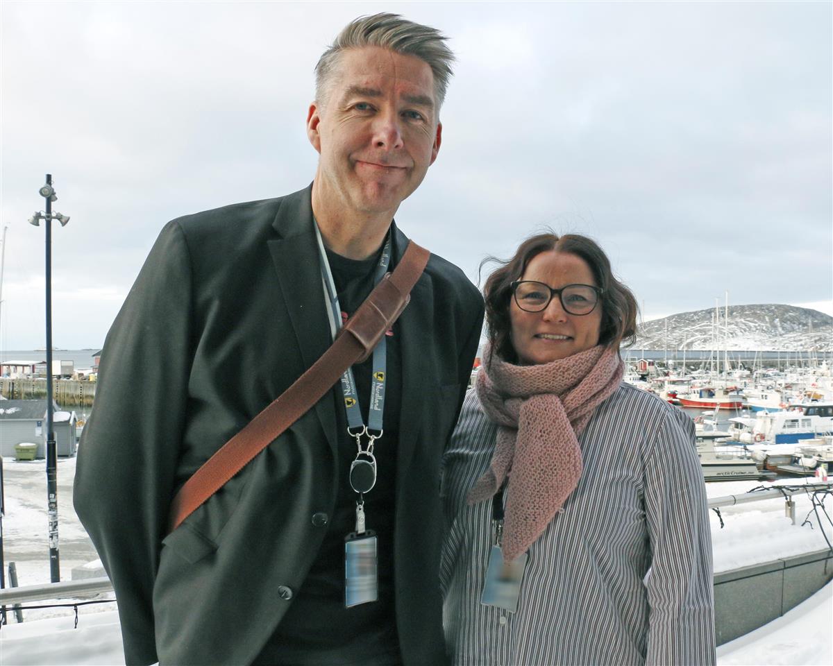 Smilende mann og kvinne. Foto - Klikk for stort bildeMobbeombudene i Nordland, Lasse Knutsen og Janne Sannes Trond-Erlend Willassen