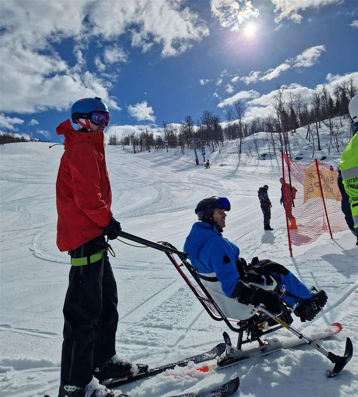 To menn på vei opp i slalombakke. Foto - Klikk for stort bilde Torben Simonsen/Nordland idrettskrets