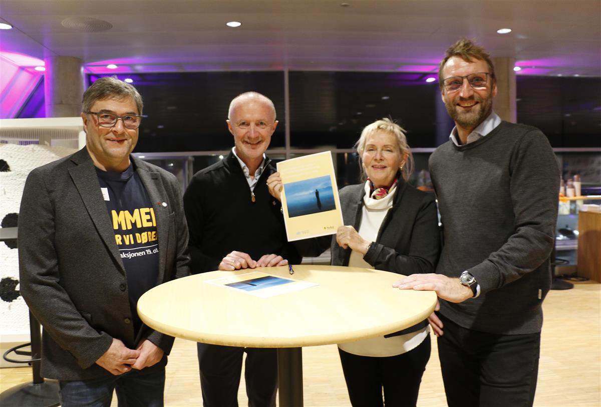 Fra venstre Jon Albert Johansen Floa som er orfører på Vega, fylkesrådsleder Svein Øien Eggesvik, Eldbjørg Larsen, ordfører i Herøy og leder i Helgelandsrådet og Stig Sørra som er sekretariatsleder