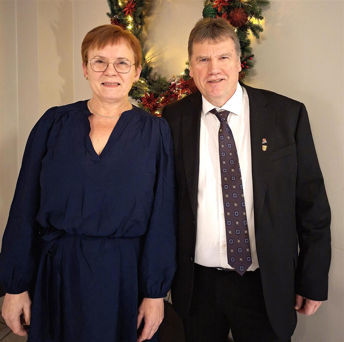 Smilende mann og kvinne i pene klær. Foto. - Klikk for stort bildeFylkestingsrepresentantene Grethe Anita Andersen (FrP) og Per-Anton Nesjan (R). NFK