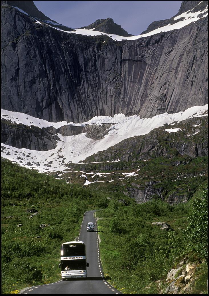 Trafikk på smale Lofotveier