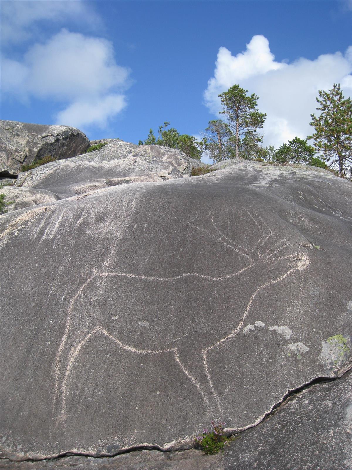 Berg med helleristning av rein. - Klikk for stort bildeHelleristning av rein. Kulturminner i Nordland